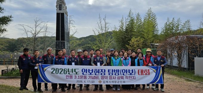 (포탈뉴스통신) 김제시는 김제시재향군인회(회장 전진석)와 안동시재향군인회(회장 김재년)가 지난 16~17일 이틀간 안동시 일원에서 “2026년도 국민화합 호 영남 친선교류 결의대회”를 개최하고, 지역 간 화합과 국가안보 의지를 다졌다고 밝혔다.