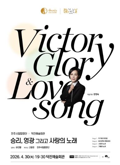 (포탈뉴스통신) 전주시립합창단(예술감독 겸 지휘자 김철)은 4월 ‘문화가 있는 날’을 맞아 오는 30일 오후 7시 30분, 덕진예술회관에서 기획 공연인 ‘승리, 영광 그리고 사랑의 노래’를 선보인다.