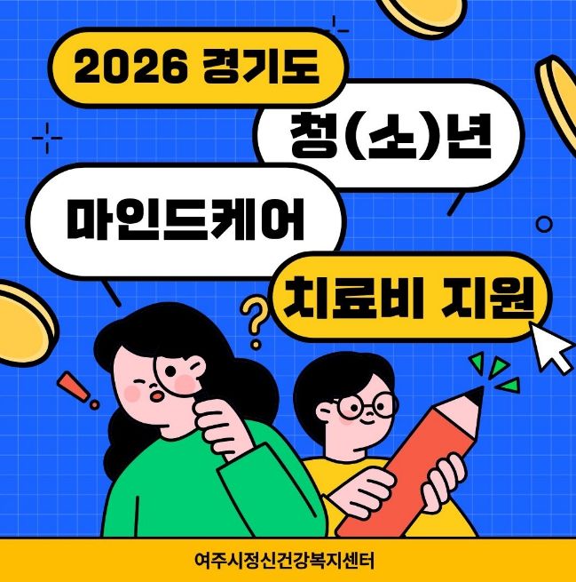 (포탈뉴스통신) 여주시정신건강복지센터는 2026년도 '청(소)년 마인드케어 정신건강 외래치료비 지원사업'을 본격 시행한다고 밝혔다.