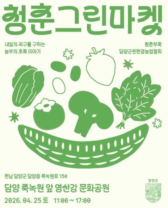 (포탈뉴스통신) 담양군친환경농업협회가 오는 25일 오전 11시부터 오후 5시까지 죽녹원 앞 영산강 문화공원에서 ‘제2회 청춘그린마켓’을 연다.