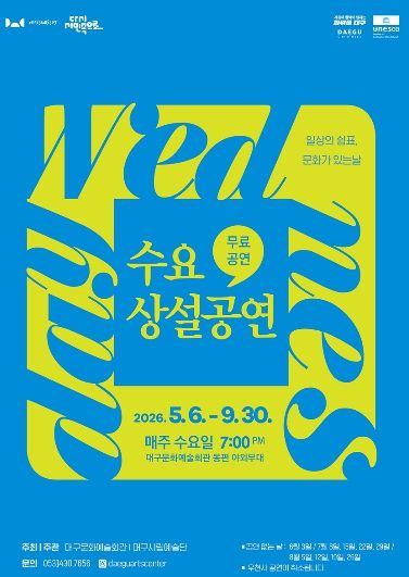 (포탈뉴스통신) 대구문화예술회관은 오는 5월 6일부터 9월 30일까지 매주 수요일 오후 7시, 대구문화예술회관 동편 야외무대에서 문화가 있는 날 ’수요상설공연‘을 선보인다.