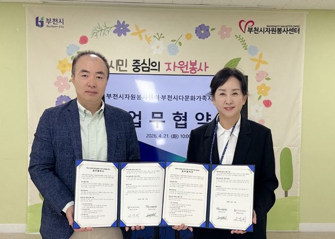(포탈뉴스통신) 부천시다문화가족지원센터는 4월 21일 부천시자원봉사센터와 자원봉사 활성화 및 다문화가족의 지역사회 참여 확대를 위한 업무협약(MOU)을 체결했다고 밝혔다.