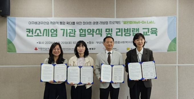 (포탈뉴스통신) 부산 동래구는 사직종합사회복지관(관장 황승호)이 지난 20일 이주배경주민의 사회적 통합 확대를 위한 소셜리빙랩 프로젝트 ‘웰온랩(Well-on Lab)’의 성공적인 추진을 위해 동래구청 및 유관 기관과 업무협약을 체결했다고 밝혔다.