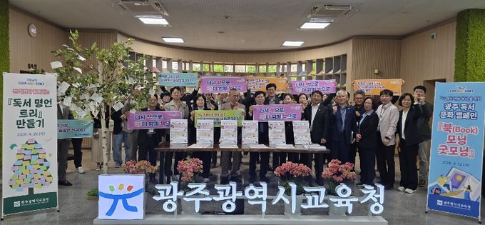 행사에는 직원들이 자율적으로 참여한 가운데 ▲‘우리 팀 다 함께 매일 독서’ 선포식 ▲전 직원이 함께하는 ‘독서 명언 트리’ 만들기 ▲‘광주 학생, 책이 된 우리들의 이야기’ 출판 도서 전시 등으로 진행됐다.