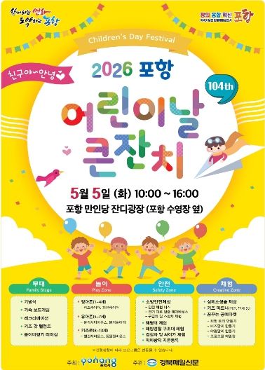 (포탈뉴스통신) 포항시는 제104회 어린이날을 맞아 내달 5일 남구 만인당 잔디광장에서 ‘2026 포항 어린이날 큰 잔치’를 개최한다.