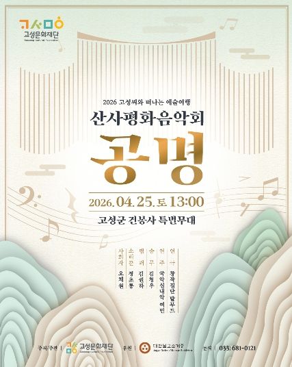 (포탈뉴스통신) 평화 경제 거점 도시 강원 고성군 산하 (재)고성문화재단은 오는 4월 25일(토) 오후 1시, 고성군 건봉사에서 산사평화음악회 『공명』을 개최한다.
