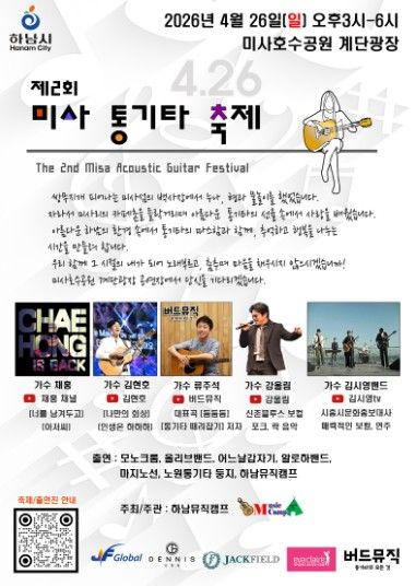 하남뮤직캠프 김남수 대표는 “이번 축제를 통해 시민들이 일상 속에서 음악을 즐기고, 미사의 통기타 문화가 전국 통기타의 중심지로 부상하는 계기가 될 것으로 기대한다”고 전했다.