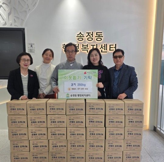 원불교 경기광주교당은 22일 광주시 송정동 행정복지센터를 방문해 김치 250㎏(5㎏, 50박스)을 전달했다. 기탁된 김치는 홀몸 어르신과 저소득 가구 등 지역 내 취약계층에 배부될 예정이다.