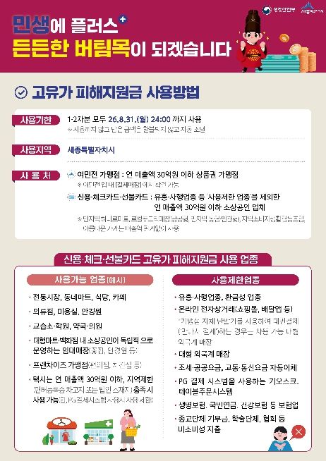 이승원 경제부시장은 “이번 1차 지급은 도움이 가장 절실한 취약계층을 우선 지원하는 데 의미가 있다”며 “특히 신청이 어려운 시민까지 빠짐없이 지원받을 수 있도록 찾아가는 행정과 현장 대응에 최선을 다하겠다”고 말했다.