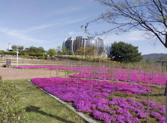 (포탈뉴스통신) 상주시민의 힐링 휴식처인 중덕지 자연생태공원에 봄 향기를 가득 머금은 꽃잔디가 만개해 눈부신 보라색 빛을 발산하고 있다.