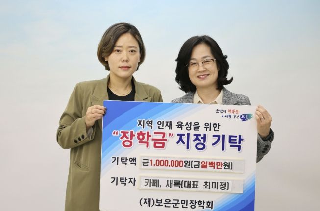 (포탈뉴스통신) 충북 보은군은 23일 ‘카페, 새록’ 최미정 대표가 지역 인재육성을 위한 장학금 100만 원을 보은군민장학회에 기탁했다고 밝혔다.