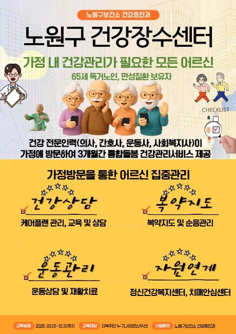오승록 노원구청장은 “건강장수센터는 어르신이 살던 곳에서 필요한 보건의료와 돌봄을 함께 받을 수 있도록 하는 통합돌봄의 핵심 기반”이라며 “앞으로도 지역 자원을 연계한 촘촘한 건강관리 체계를 구축해 나가겠다”고 말했다.