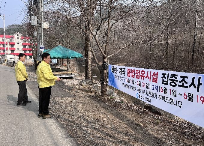 춘천시는 이같은 하천·계곡 내 불법 점유시설에 대해 ‘무관용 원칙’을 적용한다. 특히 국가하천인 북한강 내 행위자 미상 불법 점유시설에 대해서는 행정대집행 계고서 공시송달을 완료했으며 이르면 내달 15일부터 강제 철거에 착수할 예정이다.