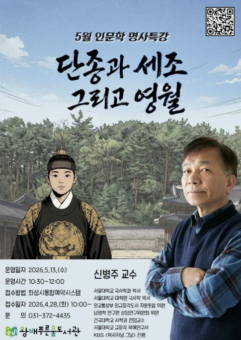(포탈뉴스통신) 화성시문화관광재단 운영하는 왕배푸른숲도서관이 오는 5월 13일, 지역 주민들을 위해 역사학자 신병주 교수를 초청하여 5월 인문학 명사특강을 개최한다.