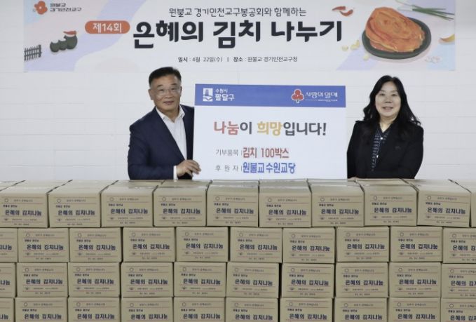 (포탈뉴스통신) 수원시 팔달구은 원불교 수원교당으로부터 지난 22일, 김치 100박스를 기부받았다고 밝혔다.