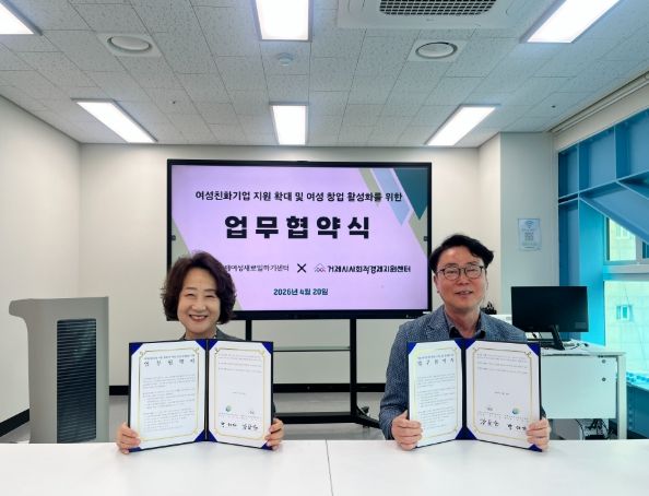 양 기관은 지난 20일 거제여성새로일하기센터에서 업무협약(MOU)을 체결하고, (예비)여성창업자와 사회적기업의 경쟁력 강화를 위한 긴밀한 협력체계를 구축했다.