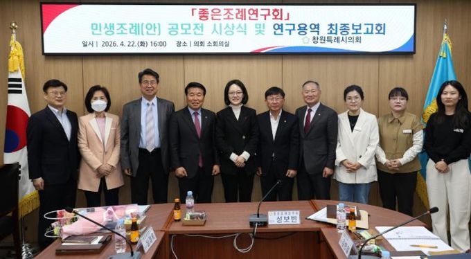 (포탈뉴스통신) 창원특례시의회 좋은조례연구회는 22일 최종보고회를 열어 시민들의 삶의 질을 높이고자, 시민들이 직접 제안한 우수 조례안 아이디어를 공유했다.