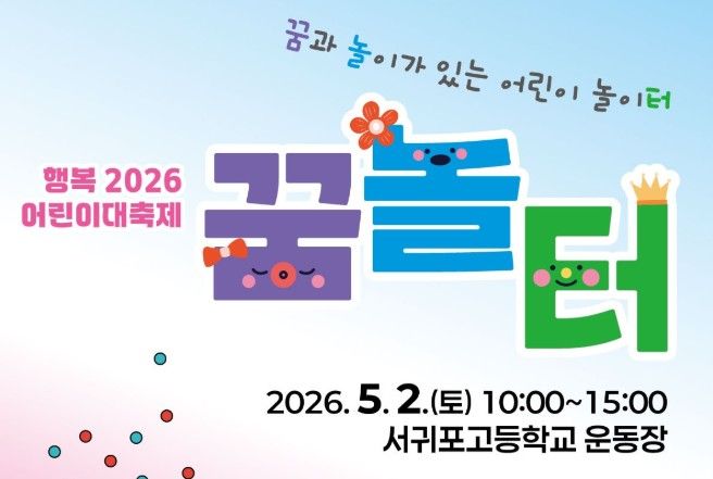 이번 행사는 서귀포시교육지원청이 주관하고 ‘행복 2026 어린이대축제 추진위원단’이 중심이 되어 “꿈과 놀이가 있는 어린이 놀이터 꿈·놀·터”를 주제로 여는마당, 공연마당, 체험마당으로 나누어 운영된다.