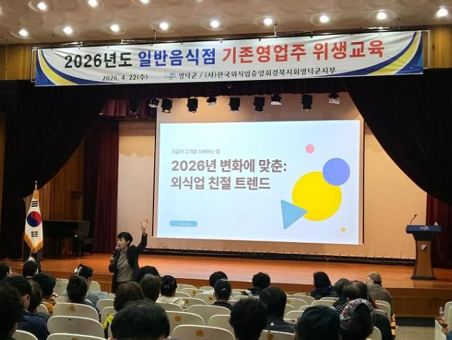(포탈뉴스통신) 영덕군은 관내 외식 산업 영업자들의 위생 관리 역량을 높이고 고품격 외식 환경을 조성하기 위해 22일 영덕군민회관에서 일반음식점 기존영업자 300여 명을 대상으로 ‘2026년 일반음식점 위생교육’을 시행했다.