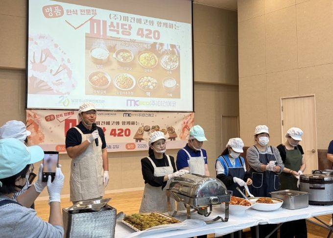 남양주시장애인복지관에서는 장애인 대상 특식 지원 행사 ‘미식당 420’이 진행됐다. ㈜미건에코 후원금 200만 원과 민트봉사단 참여로 마련된 행사에는 복지관 이용인 106명이 참여했다.