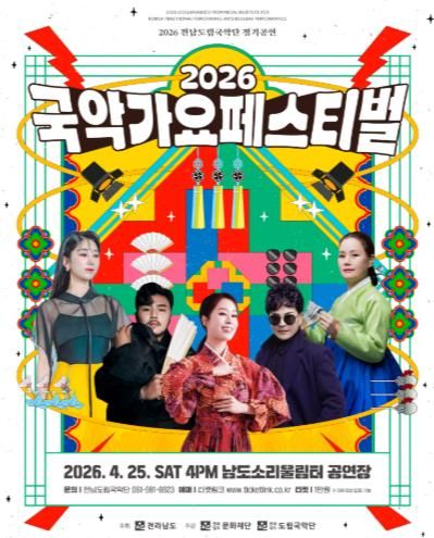 (포탈뉴스통신) 전남도립국악단은 25일 오후 4시 무안 남도소리울림터 공연장에서 2026년 정기공연 ‘국악가요 페스티벌’을 개최한다.
