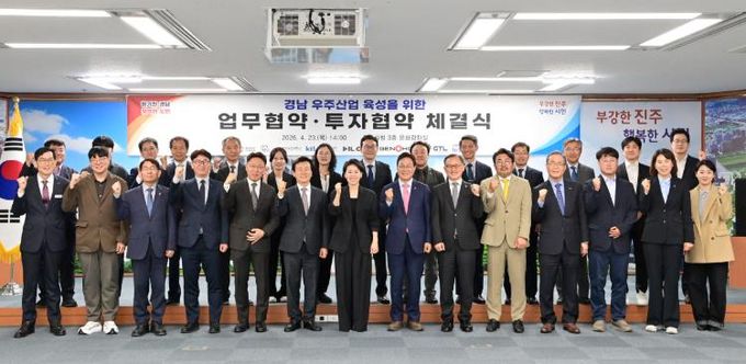 (포탈뉴스통신) 경상남도와 진주시는 23일 진주시청 문화강좌실에서 경상국립대학교, 한국산업기술시험원(KTL), 우주 분야 기업 4개 사와 함께 경남 우주산업 육성을 위한 업무협약 및 투자협약을 체결했다.