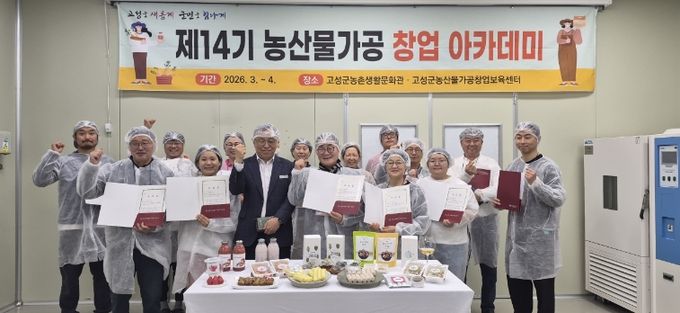 한편 고성군은 수료생을 대상으로 마케팅 심화교육과 제품개발반 운영 등 후속 지원 프로그램을 통해 농산물 가공 창업을 단계적으로 지원해 나갈 계획이다.