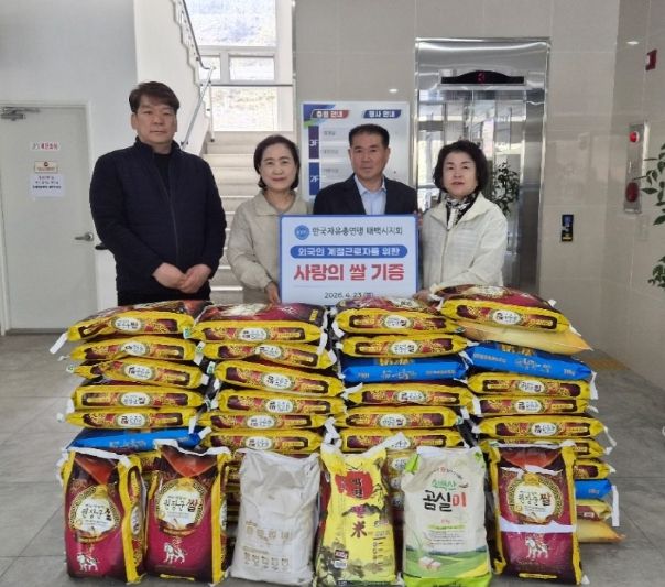 (포탈뉴스통신) 한국자유총연맹 태백시지회(회장 홍충표)는 4월 23일 태백시 농업기술센터에 외국인 계절근로자를 위한 쌀 10kg 50포를 기부했다.