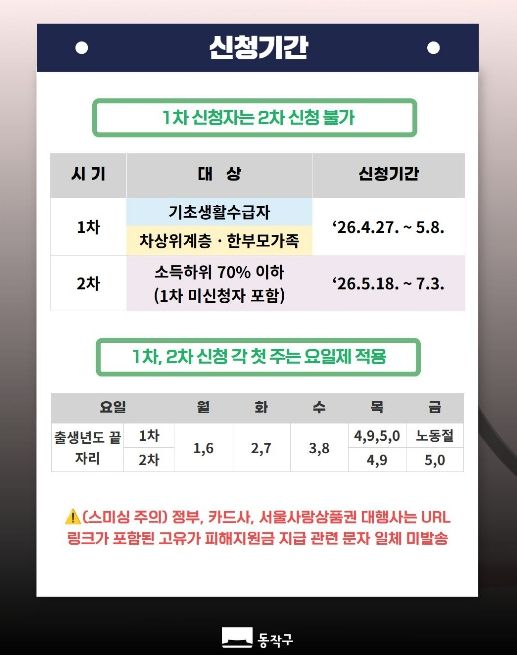 박일하 동작구청장은 “중동전쟁 여파로 인해 물가와 에너지 가격이 상승하면서 주민들의 생활 부담이 커지고 있다”며, “이번 지원이 구민들의 생활에 실질적인 도움이 되길 바라며, 앞으로도 민생 안정을 위한 정책을 지속적으로 추진해 나가겠다”고 말했다.