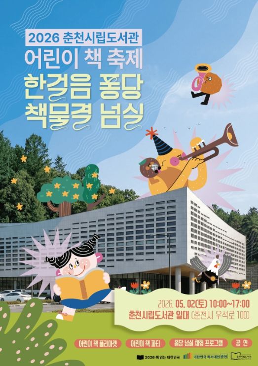 (포탈뉴스통신) 춘천시립도서관이 오는 5월 2일 오전 10시부터 오후 5시까지 도서관 내·외부 일원에서 2026 어린이 책축제 ‘한 걸음 퐁당, 책 물결 넘실’을 개최한다.
