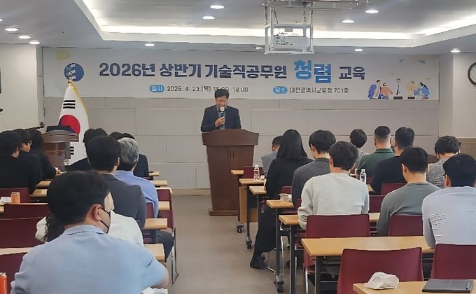 (포탈뉴스통신) 대전시교육청은 4월 23일 시교육청 회의실에서 본청 및 동·서부교육지원청 기술직 공무원을 대상으로 ‘2026년 상반기 기술직 공무원 청렴 및 시설예산 교육’을 실시했다고 밝혔다.