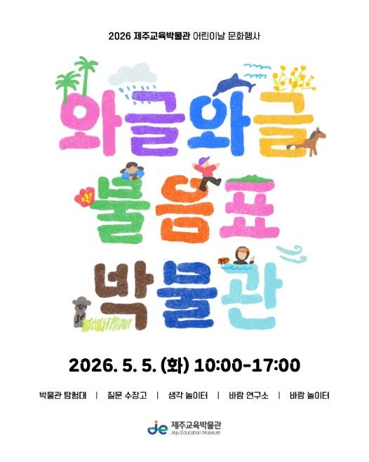 (포탈뉴스통신) 제주도교육청 제주교육박물관은 5월 5일 어린이날을 맞아 어린이와 가족이 함께 참여하는 ‘와글와글 물음표 박물관’을 운영한다.