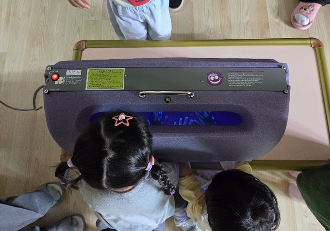 특히, 이번 교육에서는 아이들이 눈으로 직접 세균을 확인할 수 있는 ‘뷰박스(View-box)’를 활용한 체험형 교육이 큰 호응을 얻고 있다. 형광 로션을 바르고 손을 씻은 뒤, 뷰박스 검사기로 손에 남은 세균(형광물질)을 직접 눈으로 확인하는 체험형 방식으로 진행돼 흥미를 높이는 동시에 교육 효과를 극대화했다는 평가다.