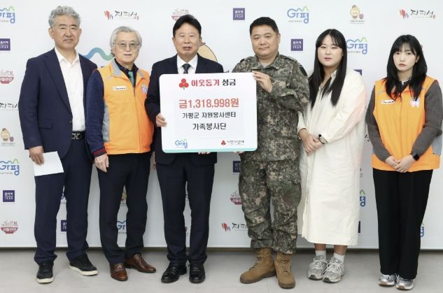 (포탈뉴스통신) 가평군 자원봉사센터 가족봉사단은 23일 가평군청 군수실에서 이웃돕기 성금 기탁 전달식을 가졌다. 이날 행사에는 서태원 가평군수를 비롯해 연기복 가족봉사단 회장, 이명열 가평군 자원봉사센터장 등이 참석했다.