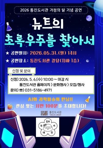 김포시 도서관과 관계자는 “가정의 달을 맞아 가족이 함께 즐기며 배울 수 있는 특별한 공연을 준비했다.”며 “이번 공연을 통해 과학을 보다 친근하게 접하고 세대 간 공감과 소통의 시간이 되길 바란다.”고 말했다.