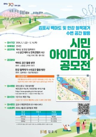 김포시 관계자는 “오랜 시간 철책에 가려져 있던 한강 수변 공간을 시민들이 직접 체감할 수 있는 매력적인 공간으로 만들기 위해 이번 공모를 기획했다”며, “김포의 미래 수변 지도를 그리는 이번 공모전에 국민 여러분의 많은 관심과 참여를 바란다”고 전했다.
