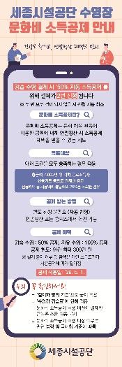 조소연 이사장은 “수영장 강습료 문화비 소득공제 적용은 시민 복리 증진에 기여하기 위한 조치”라며 “앞으로도 세종시민이 체감할 수 있는 서비스 향상을 위해 지속적으로 노력하겠다”고 말했다.
