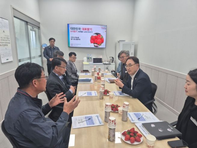 이날 현장에서는 항공 물류비 상승, 환율 변동, 인력 부족 등 수출 애로사항이 중점적으로 논의됐다. 아울러 수출농가와 귀농형 청년 스타트업 농업회사법인을 방문해 고품질 딸기 생산 방향과 수출확대 방안에 대한 의견도 청취했다.