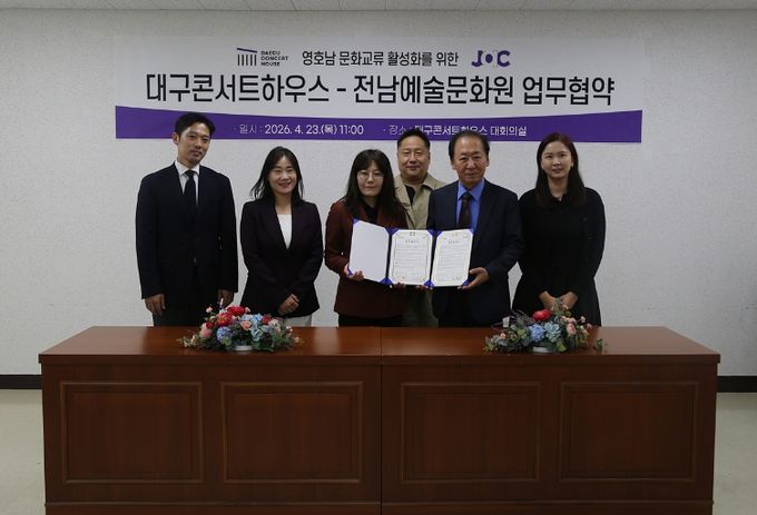 협약식에는 대구콘서트하우스 박창근 관장과 전남예술문화원 마윤미 대표를 비롯한 관계자들이 참석했으며, 양 기관은 이번 협약을 통해 예술단체 및 예술가 교류 확대와 상호 프로그램 참여 등 다양한 분야에서 협력하기로 했다.