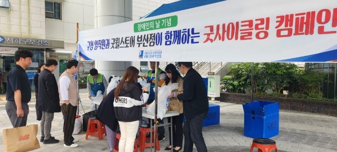 (포탈뉴스통신) 부산 사하구는 제46회 장애인의 날(4월 20일)을 맞아 지난 4월 23일 사하구청 본청 및 제2청사에서 중증장애인 직업재활시설 ‘굿윌코리아 보호작업장’(시설장 김성태)과 함께 '굿사이클링' 기부 물품 나눔 행사를 개최했다.