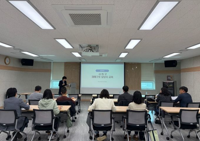 이번 교육은 각 동 행정복지센터 재해구호 담당자들을 대상으로 기후변화에 대한 이해를 비롯해 재해구호 업무의 역할과 운영 절차, 이재민 상황 보고 방법 및 지원 기준 등 실무 중심으로 진행됐다.