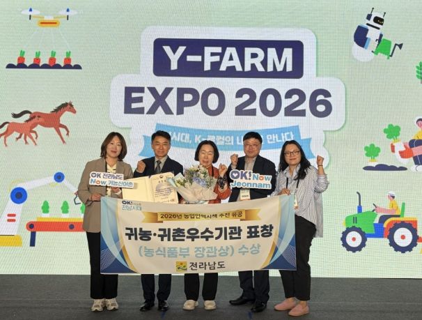 (포탈뉴스통신) 전라남도는 24일 수원컨벤션센터에서 열린 ‘2026 와이팜 엑스포(Y-FARM EXPO)’에서 농림축산식품부의 농업인력육성시책 추진 유공자 표창에서 귀농어귀촌 우수시책 추진기관으로 선정돼 장관상을 받았다.