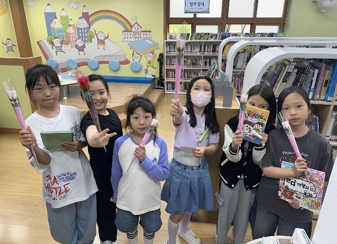 북구 매곡초등학교(교장 이재성)는 도서 대출 시 장미꽃을 선물하는 ‘책과 함께 장미를’ 행사를 열었다.