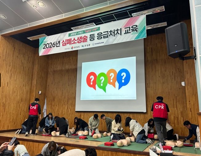 (포탈뉴스통신) 고성군은 4월 23일부터 24일까지 이틀간 고성군농업기술센터 2층 친환경농업연구소 강당에서 법정의무교육대상자 등 100여 명을 대상으로 ‘2026년 심폐소생술 등 응급처치 교육’을 실시했다.