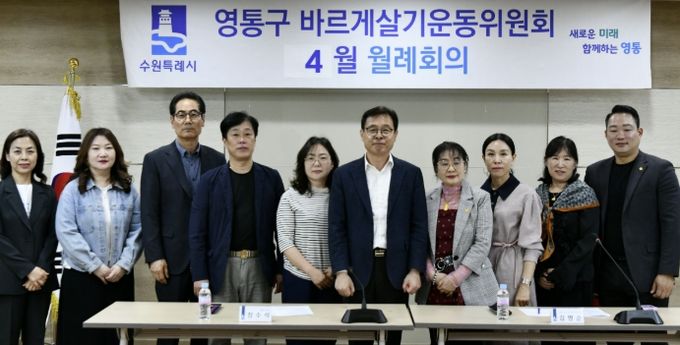 (포탈뉴스통신) 수원시 영통구는 지난 24일 바르게살기운동 영통구지도위원회가 영통구청 상황실에서 각 동 위원장 및 총무 등 14명이 참석한 가운데 4월 월례회의를 개최했다고 밝혔다.