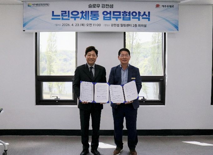 (포탈뉴스통신) 여주세종문화관광재단과 여주우체국은 4월 23일 강천섬 힐링센터에서 ‘슬로우 강천섬 느린우체통 업무협약(MOU)’을 체결했다. 빠르게 흘러가는 일상 속에서 잠시 걸음을 멈추고, 소중한 사람에게 미래의 마음을 전할 수 있는 감성 관광콘텐츠를 공동으로 운영하기 위해서다.