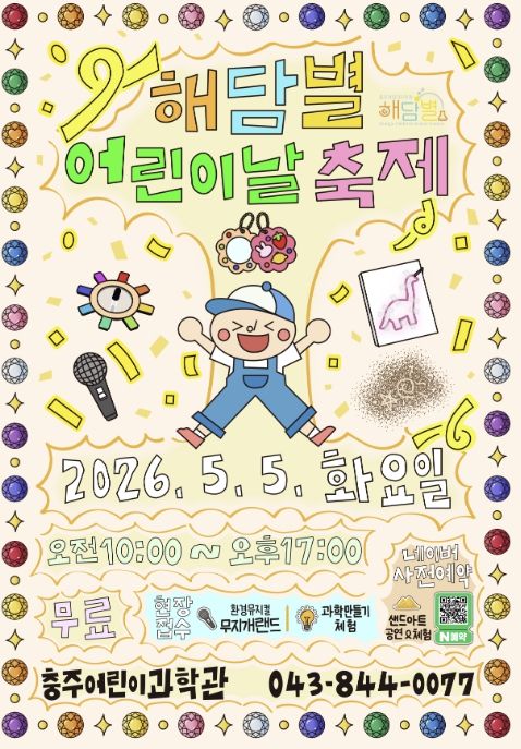 (포탈뉴스통신) 충주어린이과학관은 오는 5월 5일 어린이날을 맞아 연나이 8세 이하 어린이와 동반 가족을 대상으로 ‘해담별 어린이날 축제’를 무료로 개최한다고 밝혔다.