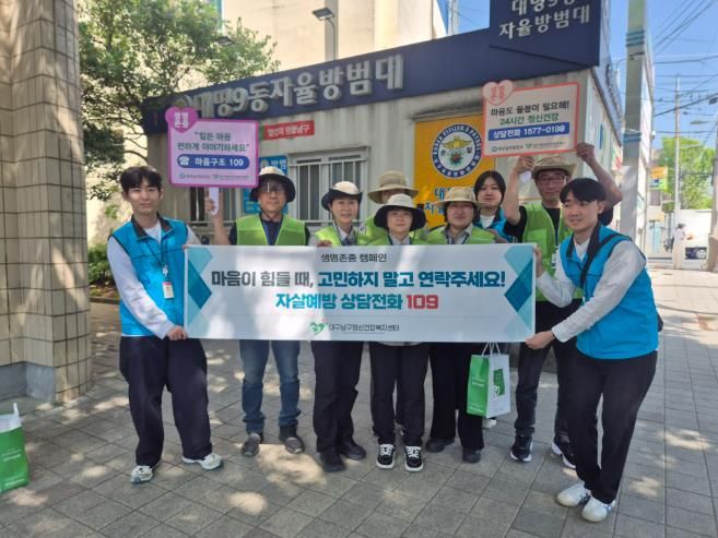캠페인에 참여한 대명9동 자율방범대원 생명지킴이들은 2023년부터 자살 빈발지역 모니터링 및 순찰 강화, 자살 고위험군 대상자 발굴 및 정신건강복지센터 신속 연계 등 다양한 역할을 수행하고 있으며 앞으로도 지역주민의 안전을 지키는 생명지킴이 역할을 이어나갈 예정이다.