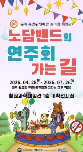 (포탈뉴스통신) 창원특례시 창원과학체험관은 오는 4월 28일부터 7월 26일까지 1층 기획전시실에서 유아 대상 흡연 예방 놀이형 특별전시 ‘노담밴드의 연주회 가는 길’을 개최한다.