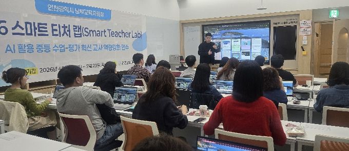 (포탈뉴스통신) 인천남부교육지원청은 지난 25일 토요일, 관내 중학교 교사 60여 명을 대상으로 ‘2026 스마트 티처 랩(Smart Teacher Lab)’ 1회차 연수를 실시했다.